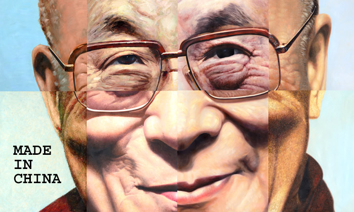 > Forbidden portrait of the Dalai Lama, 16 parts, illegally painted in China by Chinese artists.