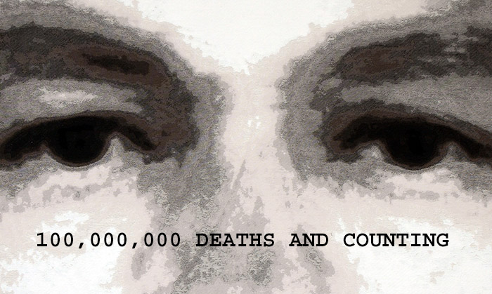 > 100 Million Deaths and Counting, the 25 most deadly dictators blended into 1 portrait.