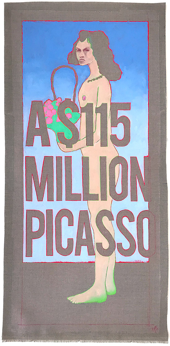 Oil and acrylic on raw linen, 35 x 22 inches (90 x 55 cm), 2018