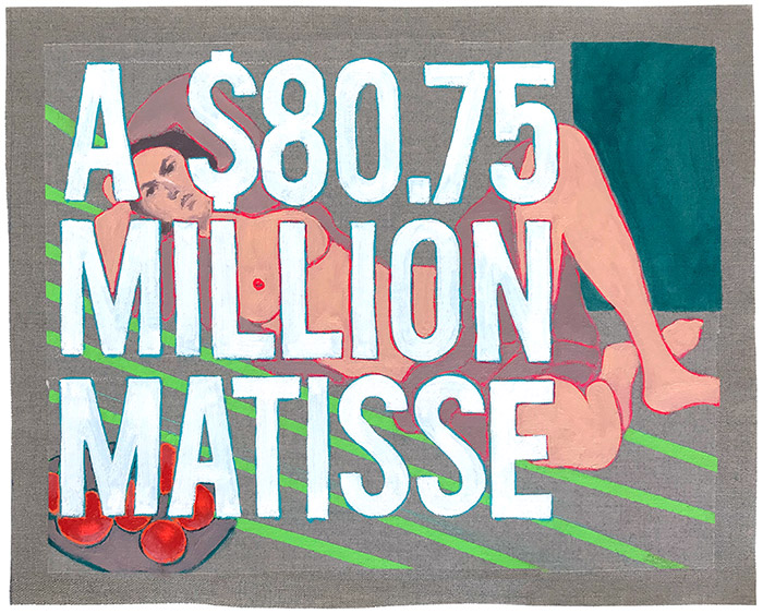 May 2018. At Christie’s sale of 19th- and 20th-century works from the collection of the late Peggy and David Rockefeller, Henri Matisse’s Odalisque couchée aux magnolias (1923) went for $80.75 million, a record for a work by the artist at auction. The piece found a buyer after only about three minutes of bidding, as a handful of collectors vied for the work.