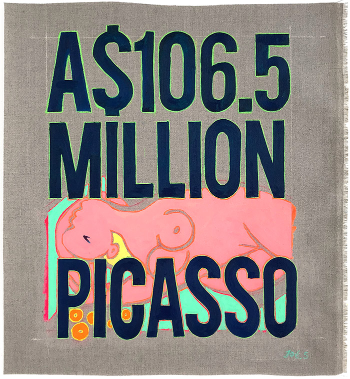 ‘Record auction at Christie’s’, ‘Most expensive ever..’, ‘What sold at Frieze?’ Naked women, painted by male artists, sold for astronomical amounts of money. The highest price ever paid for an artwork by a female artist is only 10% of the most expensive painting ever: Georgia O’Keeffe, $44 million. So 20 years after the Guerrilla Girls already asked in 1989: ‘Do Women Have To Be Naked To Get Into the Met. Museum?’, not too much has changed. It’s about money and power in a male dominated world, not about the art. We see prices, rather than the paintings.