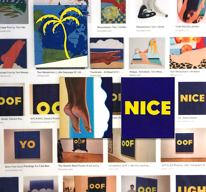 When I googled 'OOF Edward Ruscha' the 6th search result was my own 'NICE' painting. Also YO by Deborah Kass appeared in the results, great artist too. Some interesting art history lessons through Google.