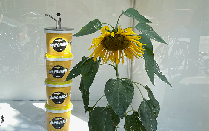 Ready made, 40 liters of mayonnaise (80% fat) and a lid dispenser.