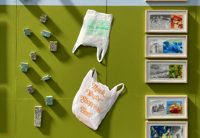 Artist-run gallery Popinnart was present at the art fain KunstRAI 2022 in Amsterdam, Netherlands. We chose a theme: sea level rise, because Amsterdam is already below sea level and a sea level rise up to 2 meters is expected by the end of the century. All 23 artists reflected on this theme and presented all new artworks on the art fair. The water line in our booth connected the artworks. The plastic bags flied and floated... Thank you.