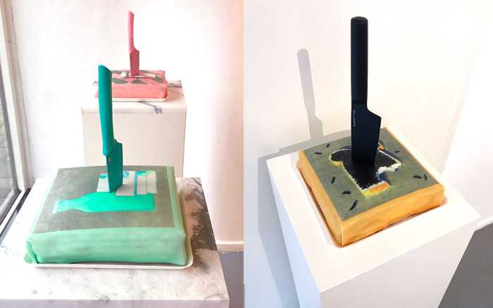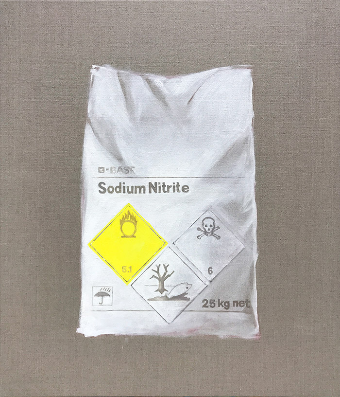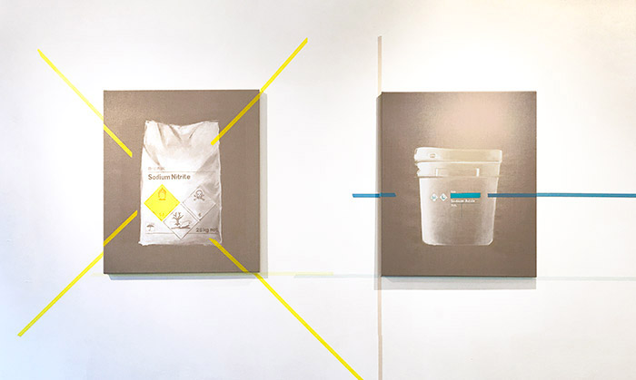 15 new paintings, oil on linen. Poisonous stories of lethal chemicals, used in murder cases. Installation includes cake, tape and band-aid.