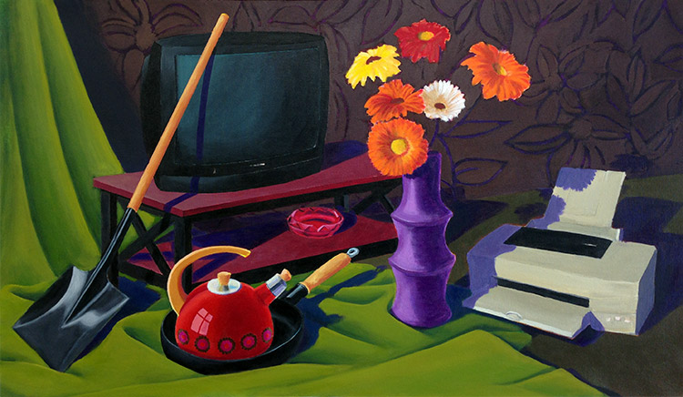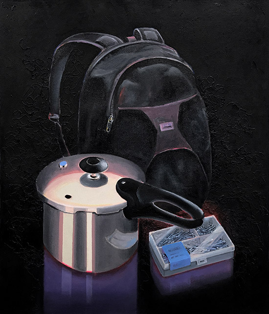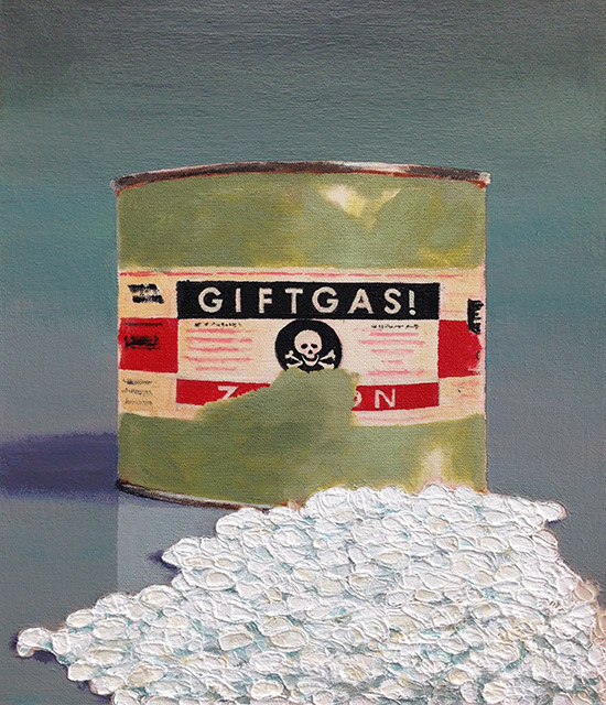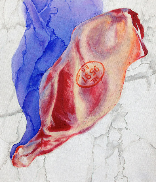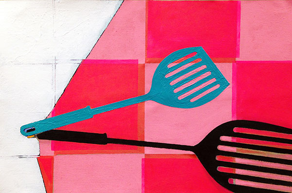 A standard kitchen spatula also served as a murder weapon on July 27, 2010. Angeles Cadillo-Castro, 32, from Utah used this tool to beat her 5-year-old daughter Stephanie Guadalupe Espindola-Cadillo to death. When paramedics arrived on the scene they found the girl’s body with multiple lacerations. The official cause of death was exsanguination: she bled to death, which is a long, torturous process. Soon police found the broken spatula pieces and the case was solved. Angeles was charged with 1st degree murder.Acrylic on raw Belgian linen, 26 x 17" (66 x 43 cm)