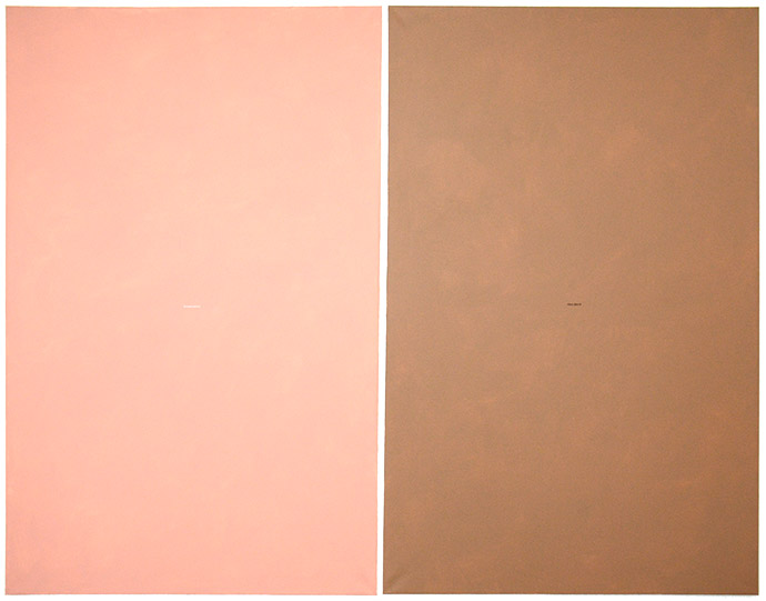 The fetuses come in two colors, caucasian and ethnic. However, in the womb fetuses of every race are the same color: flesh. Also ethnic fetuses are cheaper than the caucasian ones. Alkyd on canvas, 55 x 86" (140 x 220 cm) each, 2014