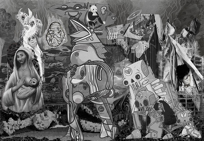 38 artists of The Guild created a fundraiser masterpiece based on Picasso's Guernica in only 3 weeks. All proceeds and royalties will go to 'Voices of Children'. See the artwork at Async and click randomize to see the different layers.