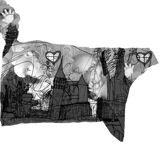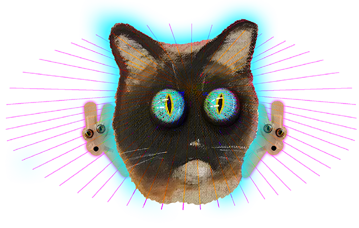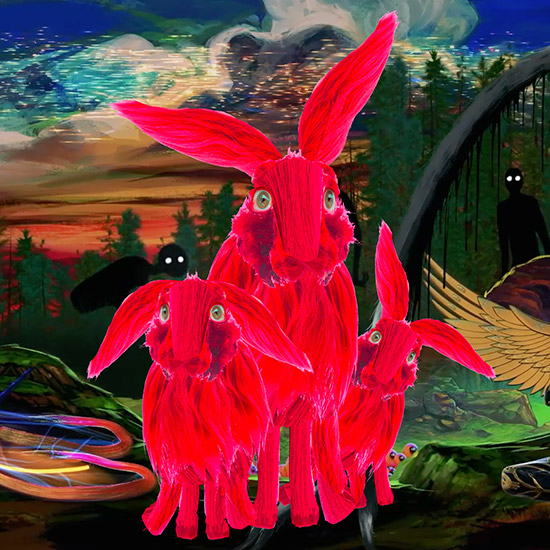 I chose the March Hare that appeared in the tea party scene. I made a hologram and created the animal using my own hair, eyes and teeth. This pink animal got some family along the way.