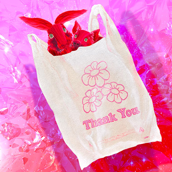 Async has a night and day collection. THANK YOU, some paintings of plastic shopping bags, were used to carry some of my pink haired babies.