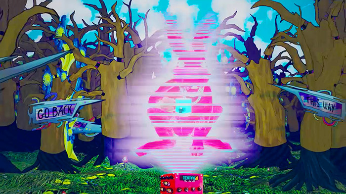 Pink trees as well as a family of hares pop up in this great animation.