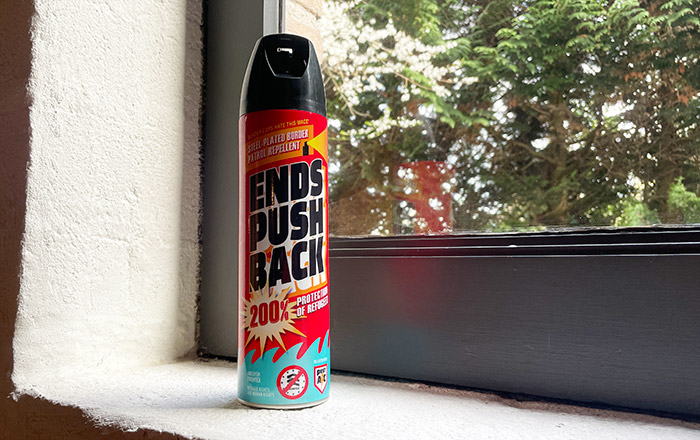 One spray can is standing in the window.